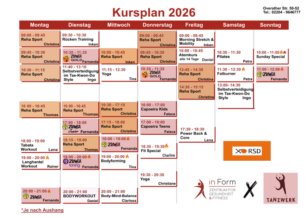 von Zumba bis zum Rücken-Training, von Fatburner bis Yoga.